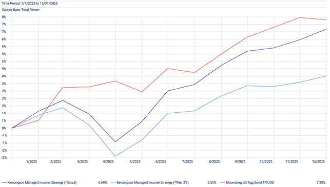 | Kensington Managed Income Strategy (*Gross) | 1.42% | 6.68% | 6.68% | 5.81% | 2.99% | 5.19% | 5.73% | 8.29% |