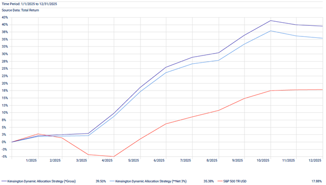 | Kensington Dynamic Allocation Strategy (*Gross) | 2.30% | 39.50% | 39.50% | 18.50% | 13.56% | 18.42% | 16.94% |