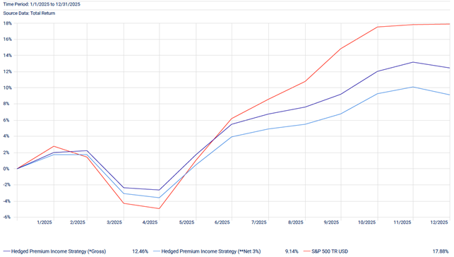 Even in strong market years, investors often experience unexpected stress, as was the case in 2025. The Hedged Premium Income Strategy is structured to seek to generate income in certain environments, participate in a portion of market upside, and manage downside risk during periods of market stress. As such, the Strategy is positioned for a wide range of potential outcomes.