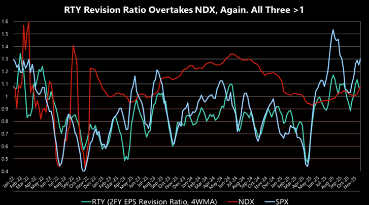With 2026 shaping up as a midterm election year and recession risk still muted, history points to a familiar pattern: sustained outperformance of Small-Caps. Notably, earnings revisions for the Small-Cap universe have turned positive, signaling a potential end to the earnings recession that plagued the segment over the past year.